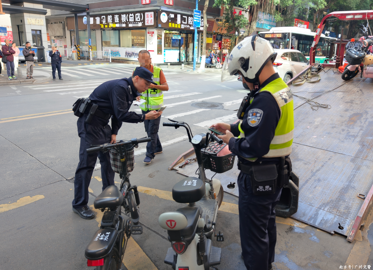 在执法整治层面,聚焦电动自行车交通违法突出问题,以从严管控为原则精准发力,持续强化执法打击力度。自专项整治行动开展以来,番禺区以“无牌、非法改装”为整治重点,在市桥、海傍、钟村等重点地铁站口及周边开展专项整治。通过强化执法有效遏制电动自行车违法乱象,为市民营造出安全有序的道路交通环境。