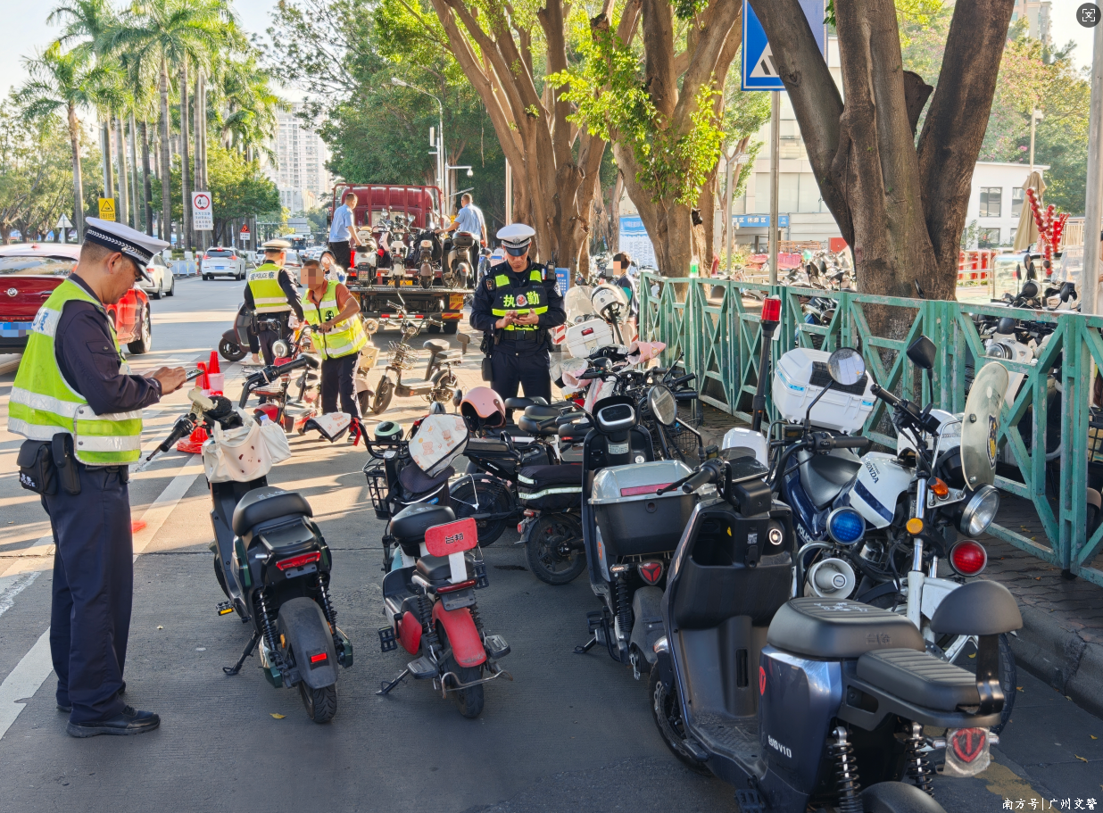 为进一步规范电动自行车通行秩序,番禺交管大队联合相关职能部门及各镇(街),结合辖区交通实际情况,以“协同联动、合力攻坚、从严管控、柔性执法、消除顽疾、优化秩序”为核心思路,自11月17日起在番禺区开展电动自行车通行秩序专项整治行动。此次行动通过强化执法打击、深化劝导教育、科技赋能管控、抓实源头管理四项举措,构建起全方位、多层次的交通安全治理体系,推动电动自行车治理工作取得初步成效。